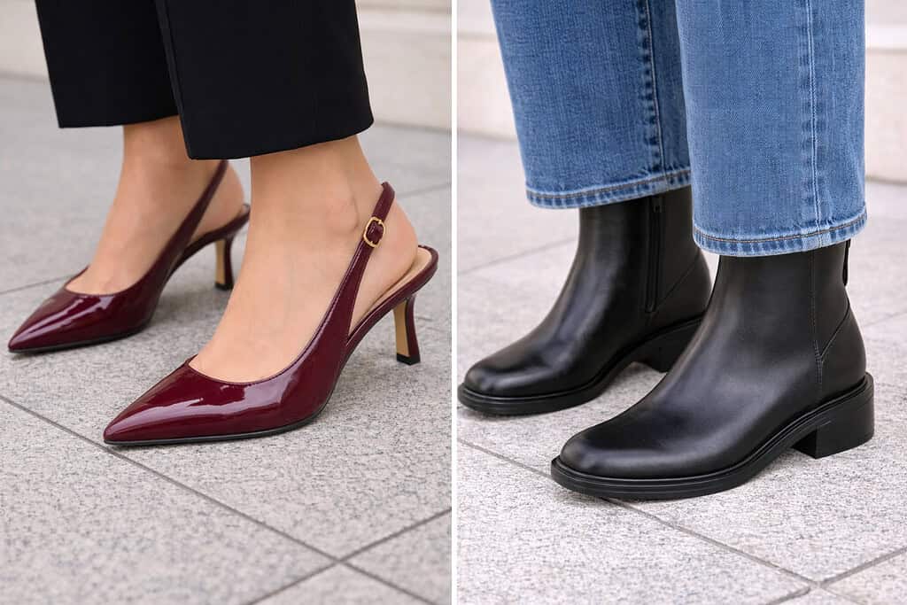 Opt for comfortable yet flexible styles that can be dressed up or down, like a pair of classic black ankle boots or sleek white sneakers.