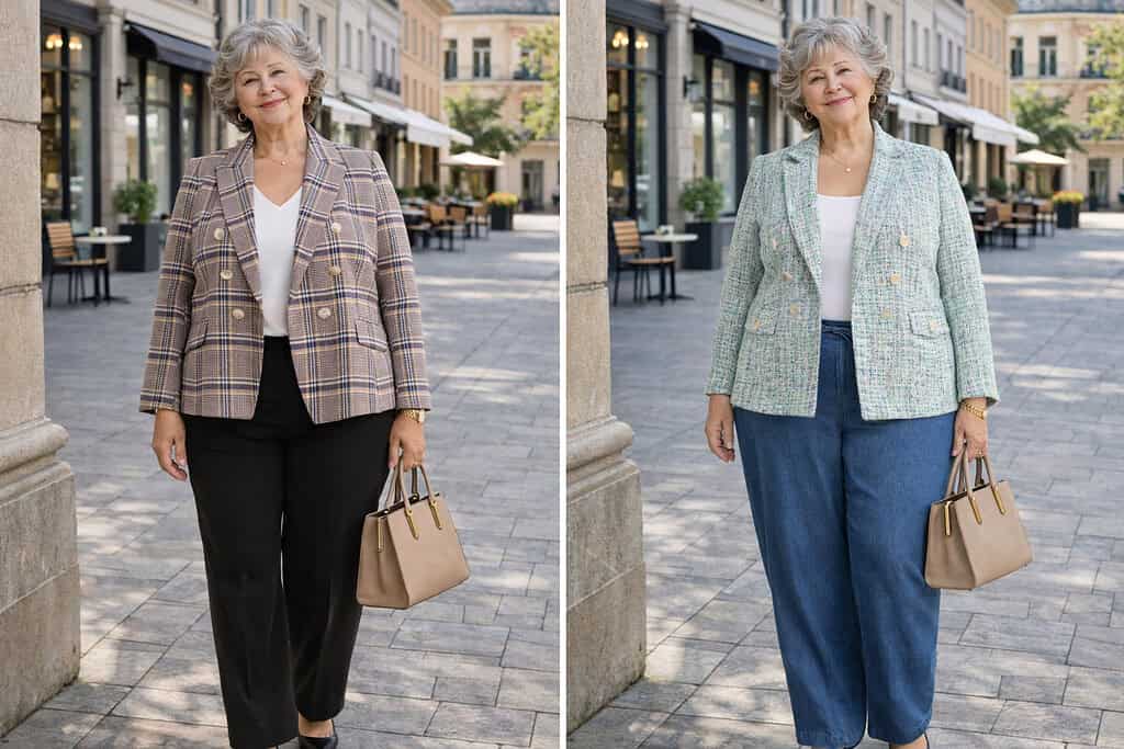 For fashion-savvy 70-year-old women, tailored jackets and blazers are a timeless and sophisticated choice.