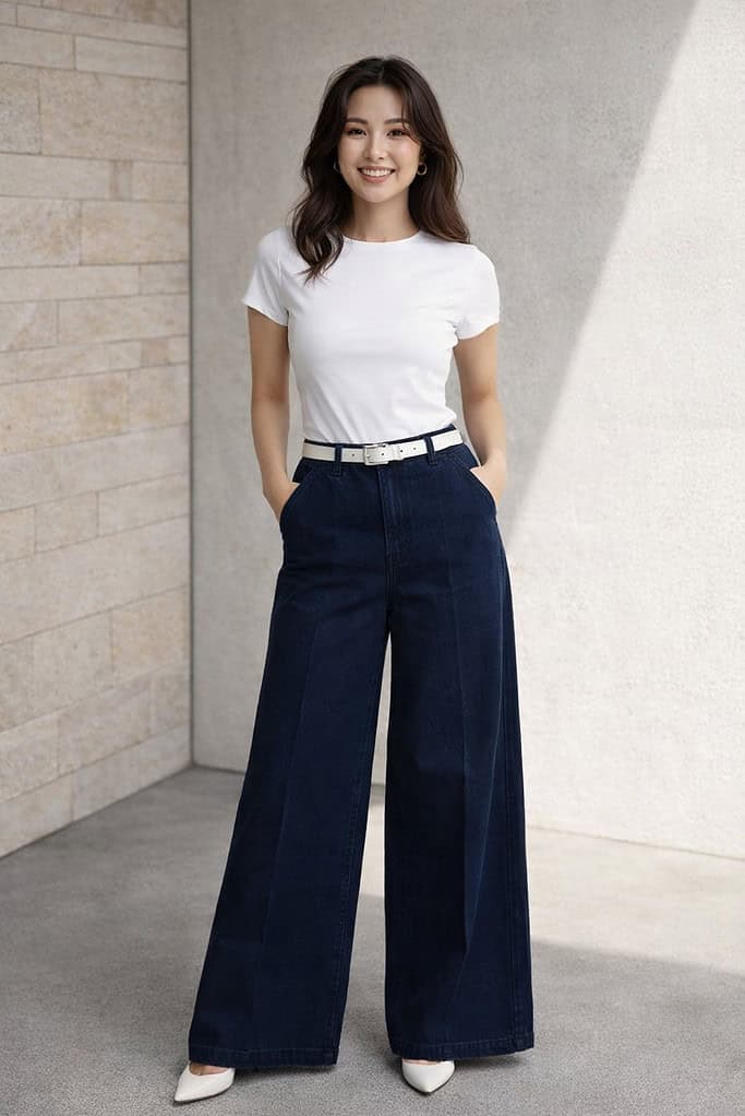 - Dark-wash jeans: Opt for a slim or straight-leg style that hits at or slightly above the ankle.