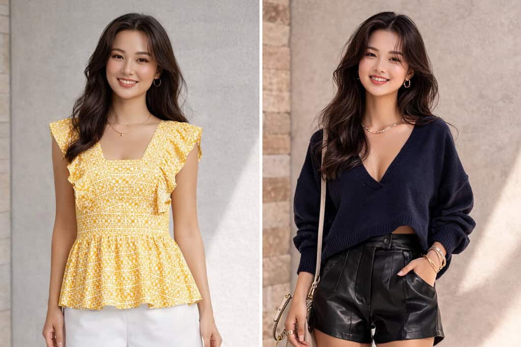 When curating a minimalist closet style, specific top styles can be particularly flattering for petite women.