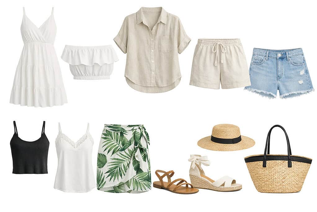 A travel capsule wardrobe for hot climates focuses on lightweight, breathable fabrics.