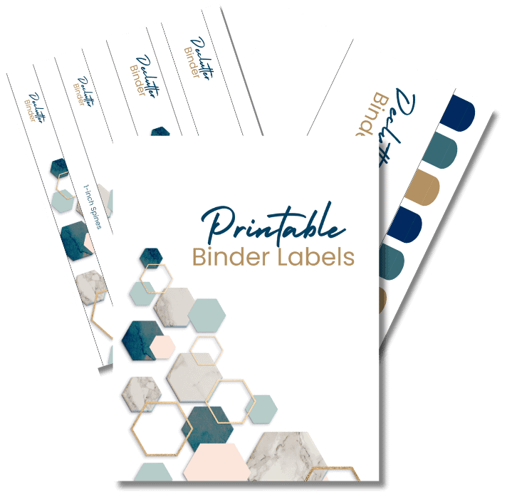 Keep your declutter binder organized and easy to use with printable spine labels in multiple sizes (1-inch, 1.5-inch, 2-inch, 3-inch, and 4-inch).