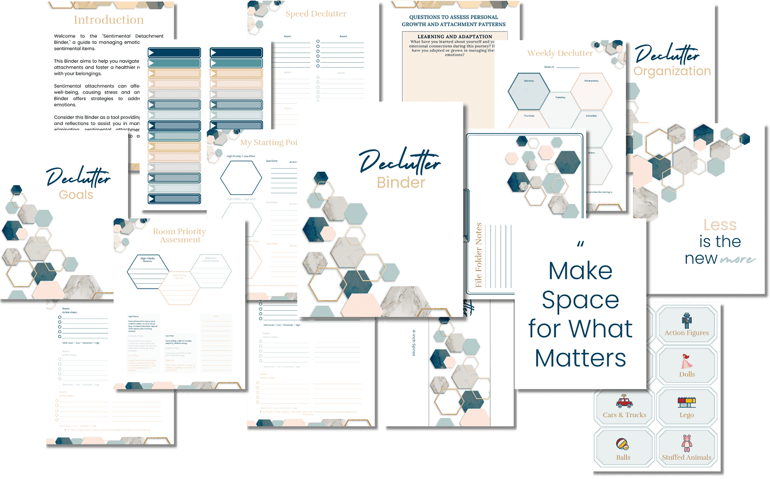 I purchased the Declutter Binder to help me make sense of the decluttering process. I frequently struggle with decluttering my home and life. With three kids, two jobs, and a home, I find it hard to keep up and make things easier for my family. The Declutter Binder has helped me make sense of what and how I need to tackle things. I have a habit of trying to handle large tasks at once. This Binder helps me break things down into smaller parts as well as dividing them by priority. I am able to think more clearly about my tasks and handle things easier instead of getting overwhelmed and not accomplishing much. Since I have utilized the Binder, I have been able to see much progress in my home and my family is more organized as a result of it. It is more peaceful at home and in my mind as a result. My husband is excited with my new mindset as a result. This Binder breaks it all down! From daily, weekly, and monthly tasks to the labels, I feel so accomplished. My mornings seem more purposeful now. I truly am beginning to make space for what matters. Thank you!
