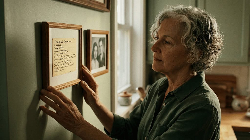 I took photos of my kids' artwork before I let most of it go. I kept one of my mother's handwritten recipe cards framed on the kitchen wall instead of buried in a drawer. I gave my father's old watch to my son, who actually wears it now.
