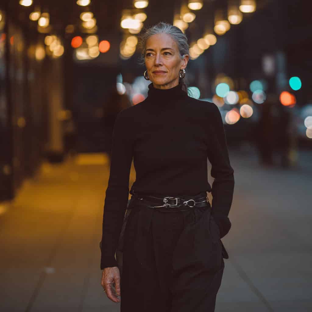 A confident, high-contrast outfit that always looks pulled together.