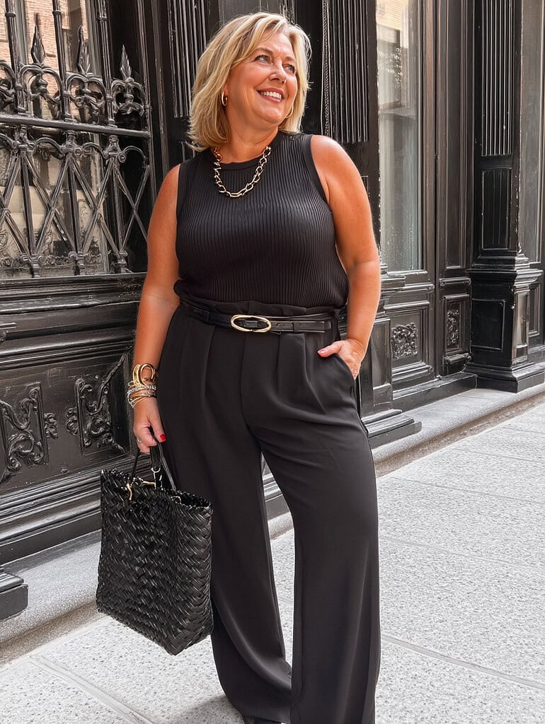 Think about essentials like a tailored blazer that can be dressed up or down, a crisp white shirt that emanates refined simplicity, and perfectly fitted trousers that enhance your silhouette.