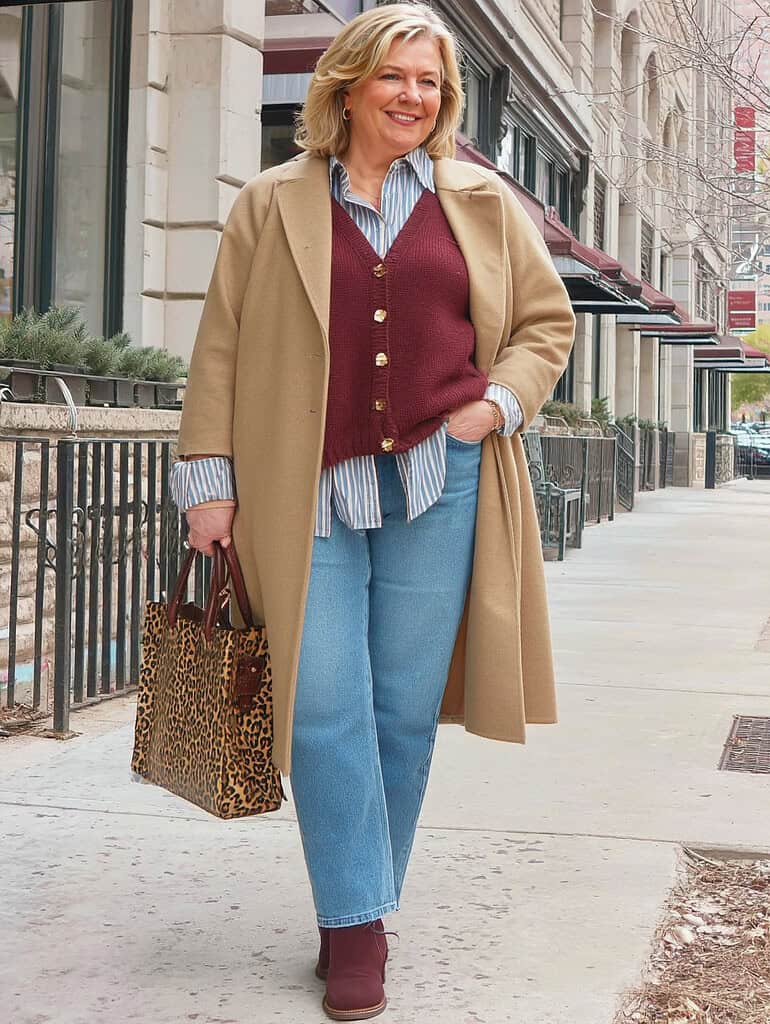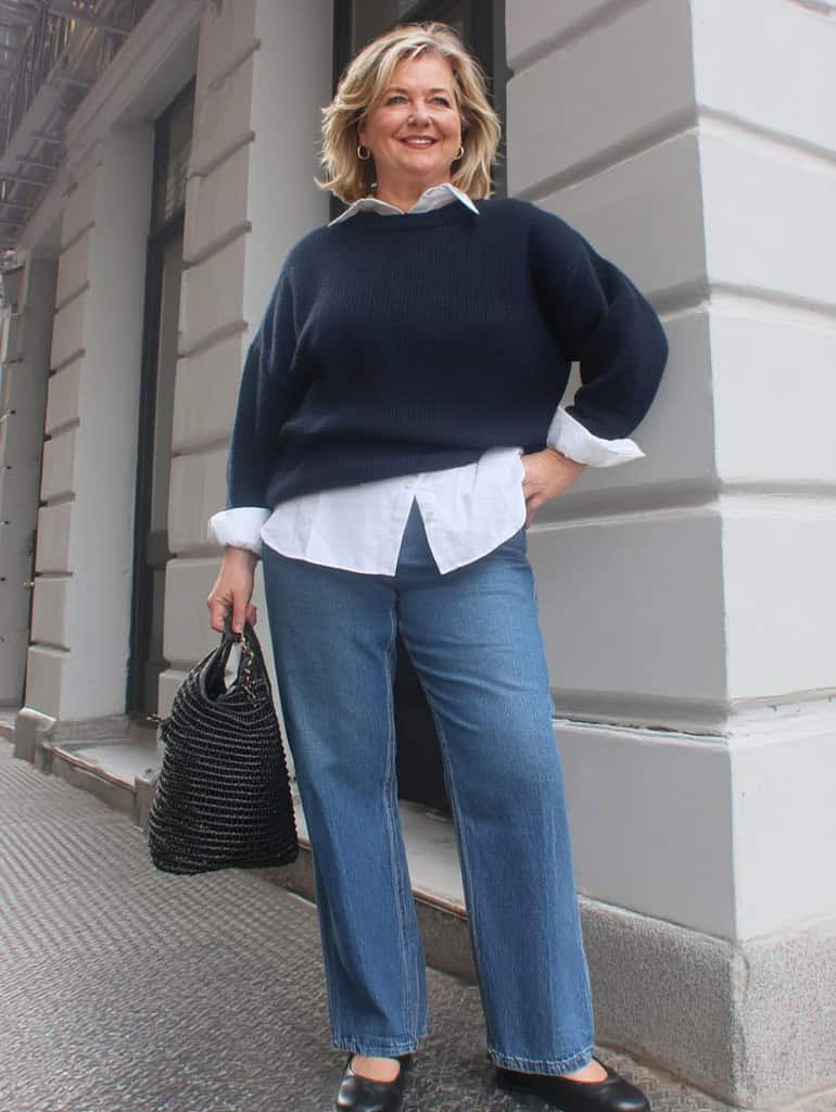 To look younger at 50, embrace a balanced mix of classic and trendy pieces.