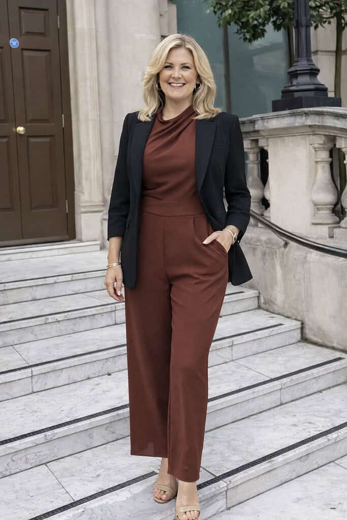 You can also layer a blazer over a jumpsuit to add a touch of sophistication and formality.