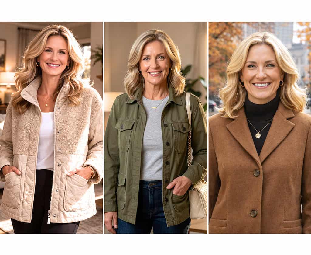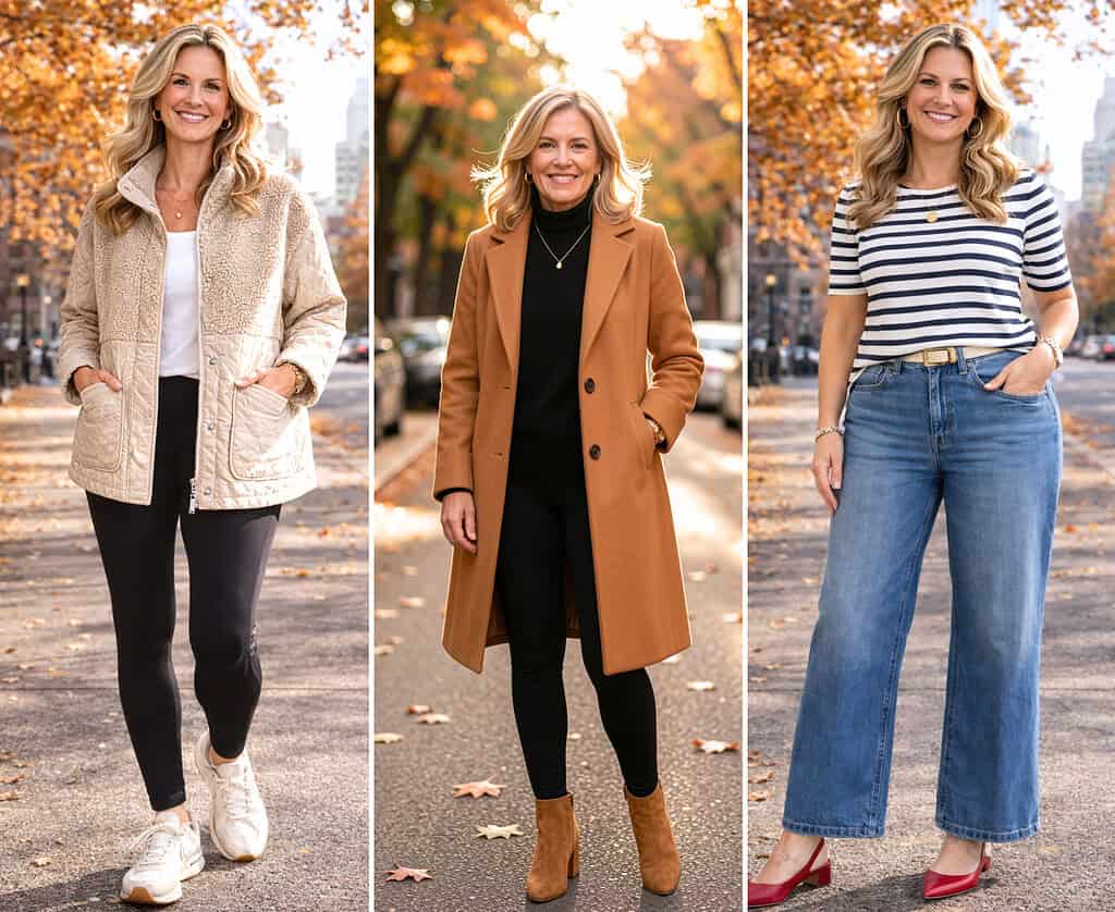 Cozy knit or fleece jacket for colder days: Stay snug and stylish with a soft knit or fleece jacket during chilly fall days. Choose a neutral color that complements your capsule's color palette for easy pairing.