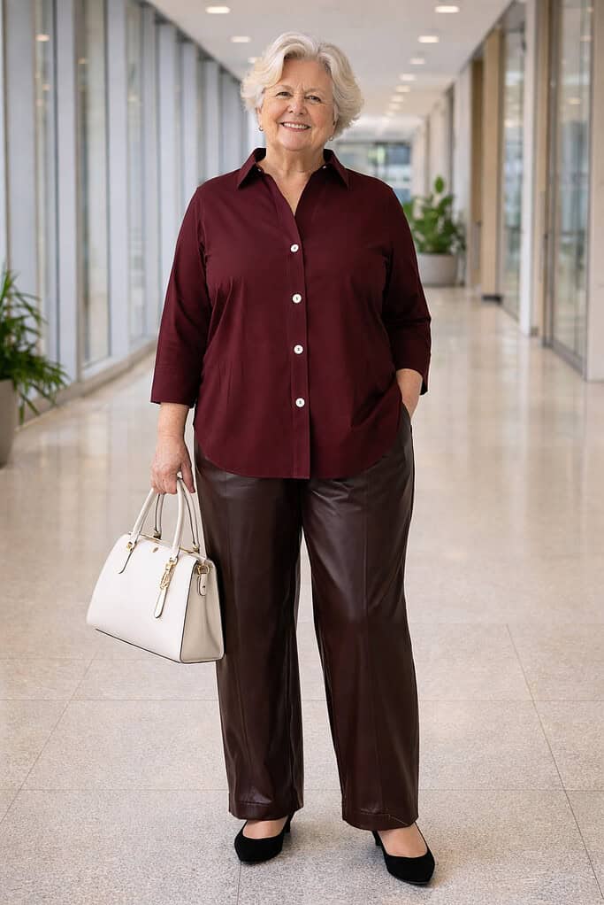 Additionally, consider cropped or ankle-length pants for a modern and flattering look while maintaining a balance between sophistication and ease of movement.