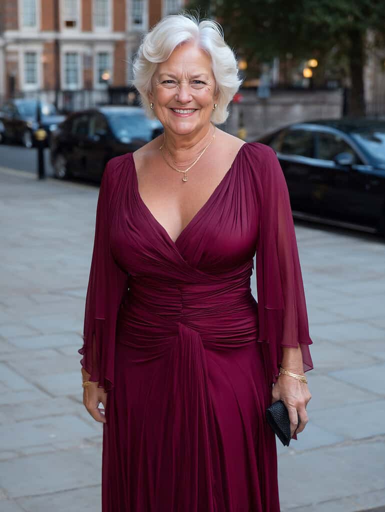 When attending evening events, consider elegant options like a floor-length gown or a cocktail dress in a rich color or luxurious fabric.