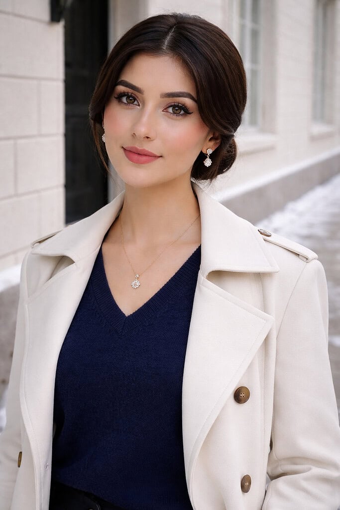 Opt for tailored coats, cinched waists, and soft textures like cashmere and silk.