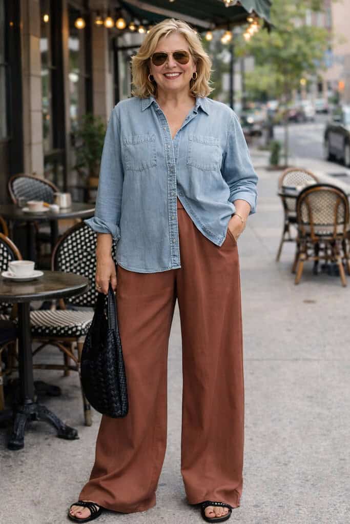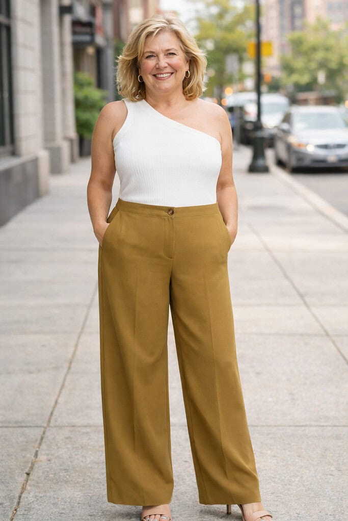 Many women over 50 have the same question. Wide-leg pants are stylish, but without the right choices in fit, fabric, and styling, they can be harder to pull off.