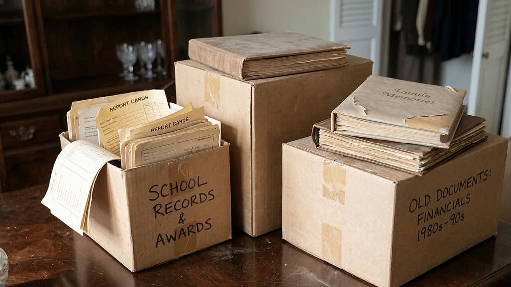 This one surprises people. Boxes of old documents, school records, even family photo albums — many adult kids don't know what to do with these and quietly feel burdened by them.