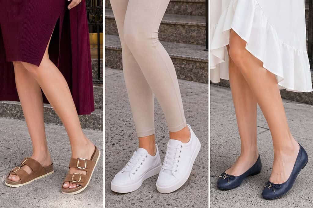 For instance, a comfy pair of sneakers will be your go-to for those long walks and swollen feet.
