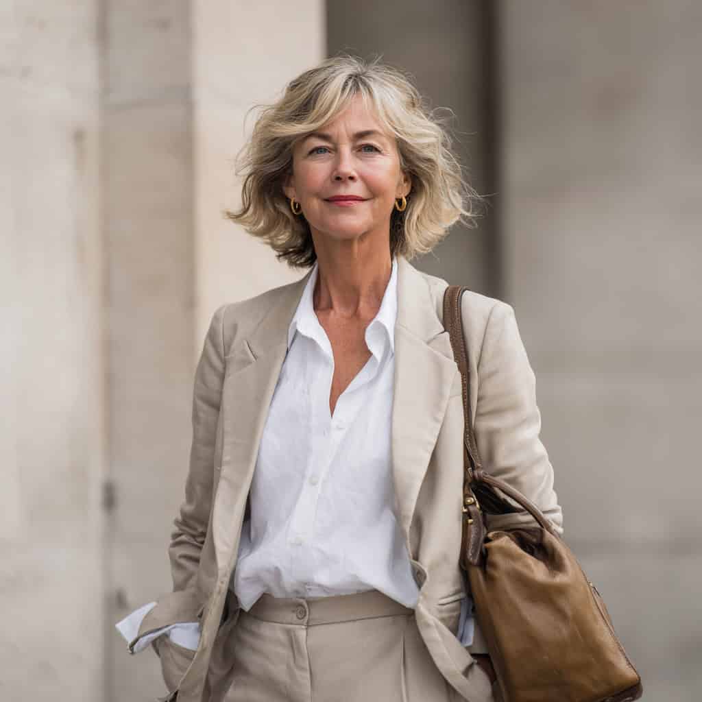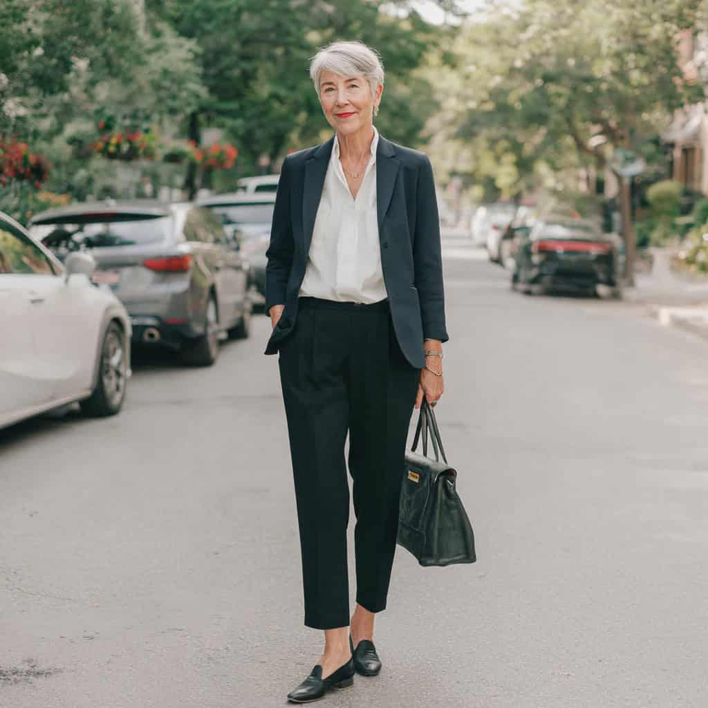 For example, a blazer in navy or black worn over a crisp blouse makes you look sharp and modern without effort. Small details, such as good shoes or a structured handbag, also lift your overall style.
