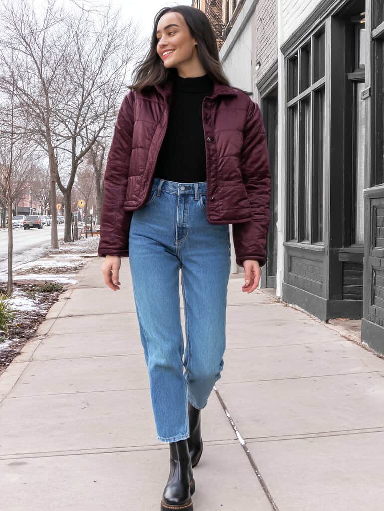 - Sturdy and waterproof boots: Invest in high-quality boots that provide traction. Look for boots with a block heel; this gives you height and elegance while remaining highly comfortable and providing stability when you walk. If your boots are suede, remember to spray them with a water repellent so they don't get stained by wet conditions.