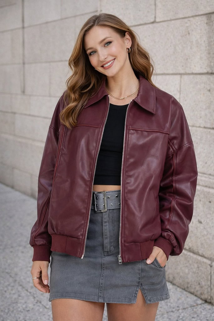 If you're wearing a loose-fitting top, layer it with a fitted blazer or a cropped jacket to create a more structured and flattering silhouette.