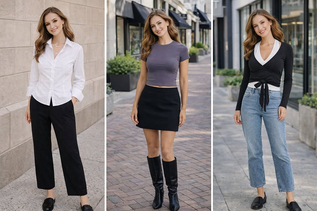 • Fitted T-Shirts: Choose styles with shorter sleeves and a length that hits at the hip to avoid overwhelming your petite frame. These are perfect for creating stylish, everyday looks.