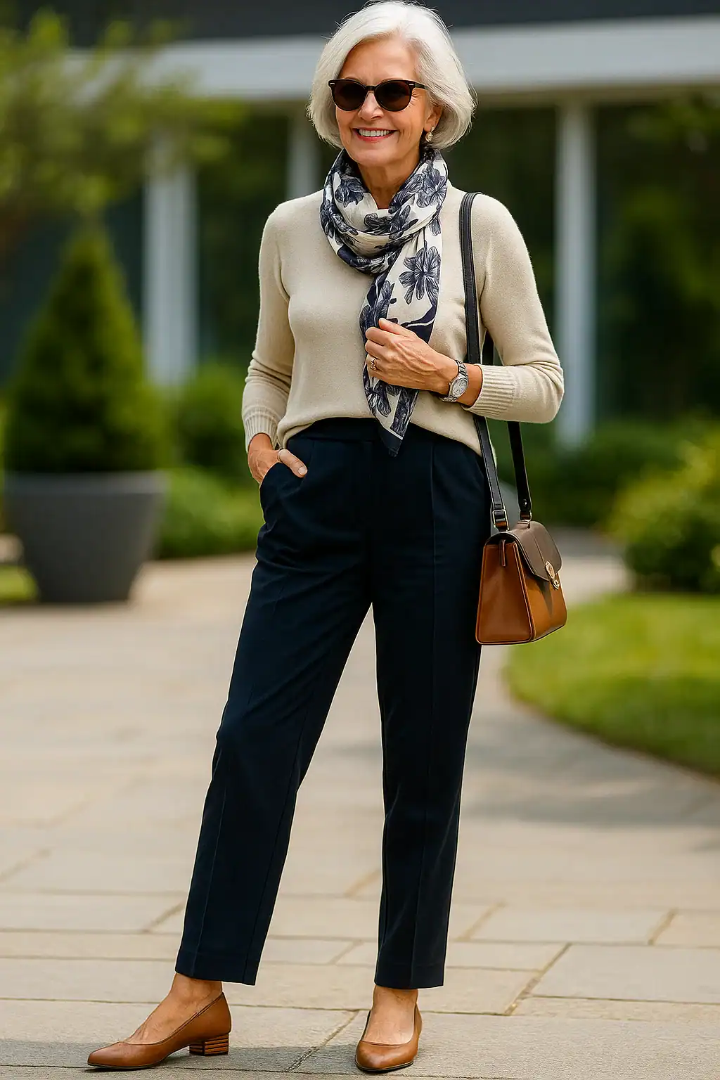 Accessories update any outfit. A colorful scarf, a structured handbag, or bold earrings add interest without effort. Even a simple blazer looks current when paired with a statement necklace.