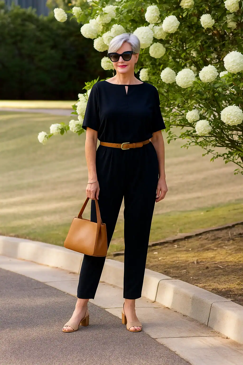A simple jumpsuit is easy to wear and can be dressed up or down.