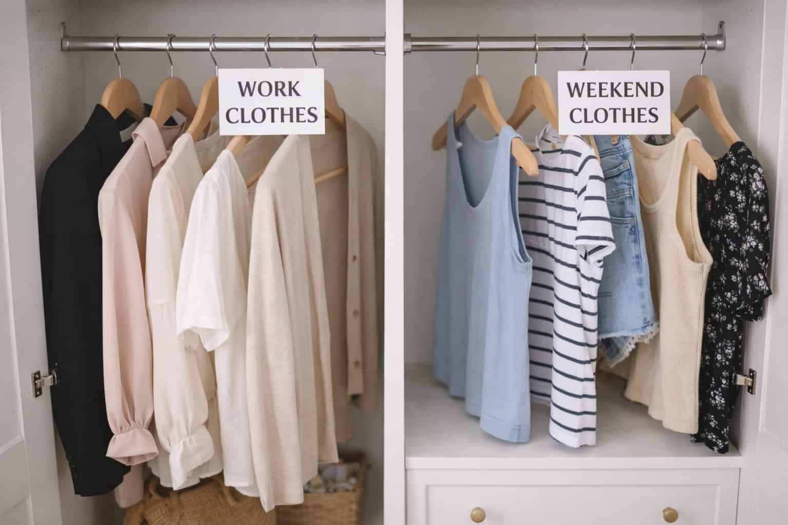 To do this, divide your clothes into categories, such as work clothes and weekend clothes.