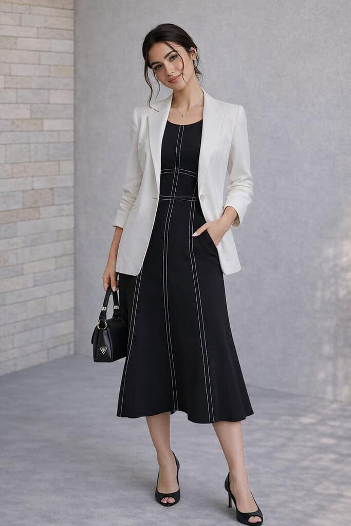 A pair of black pumps, for instance, not only complements your dress perfectly but also boosts your confidence.
