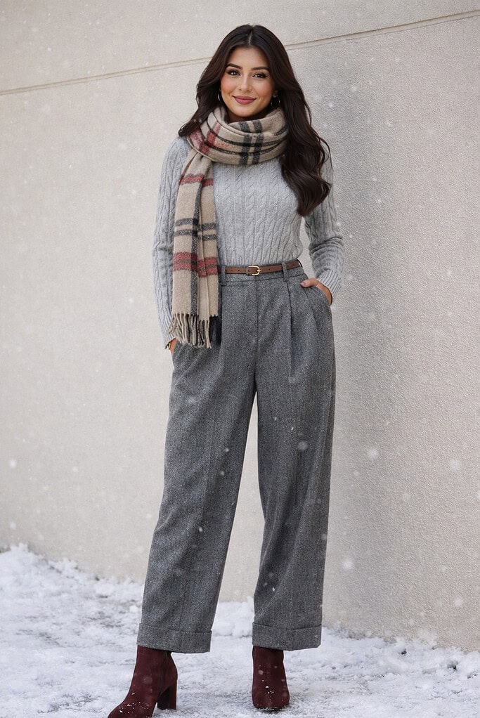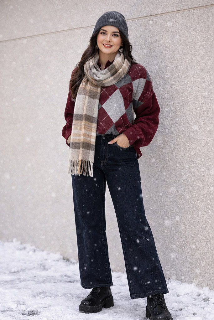 A deep burgundy sweater or a classic plaid scarf can capture the essence of the season and elevate your winter style.