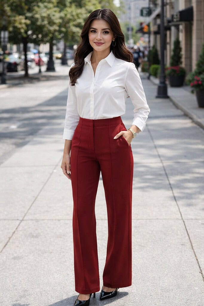 You elevated them with a stylish blouse and heels, effortlessly achieving a professional and comfortable look.