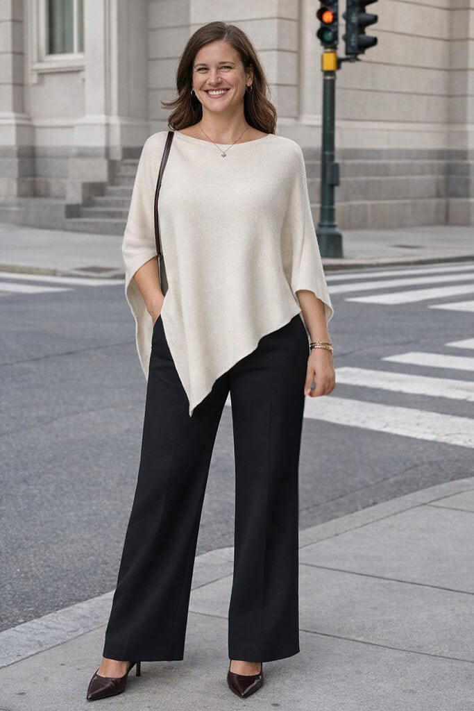 Opt for well-fitted, high-quality pieces and incorporate pops of color or print. Wear what makes you feel confident and comfortable.