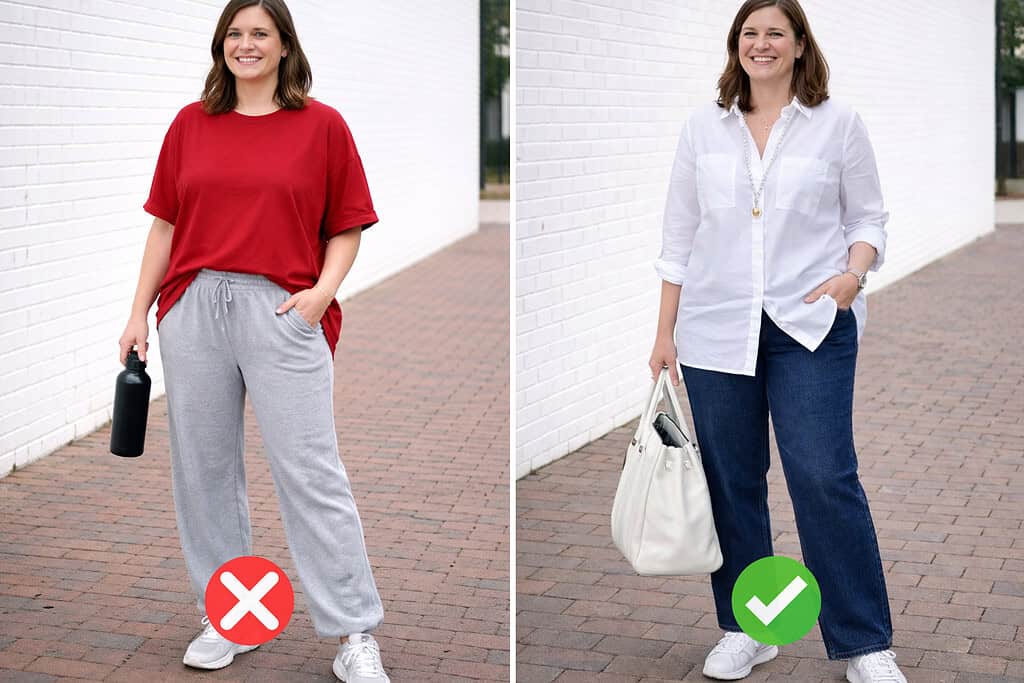 It's tempting to slip into your comfiest sweatpants and oversized t-shirts, but it's not always the best choice.