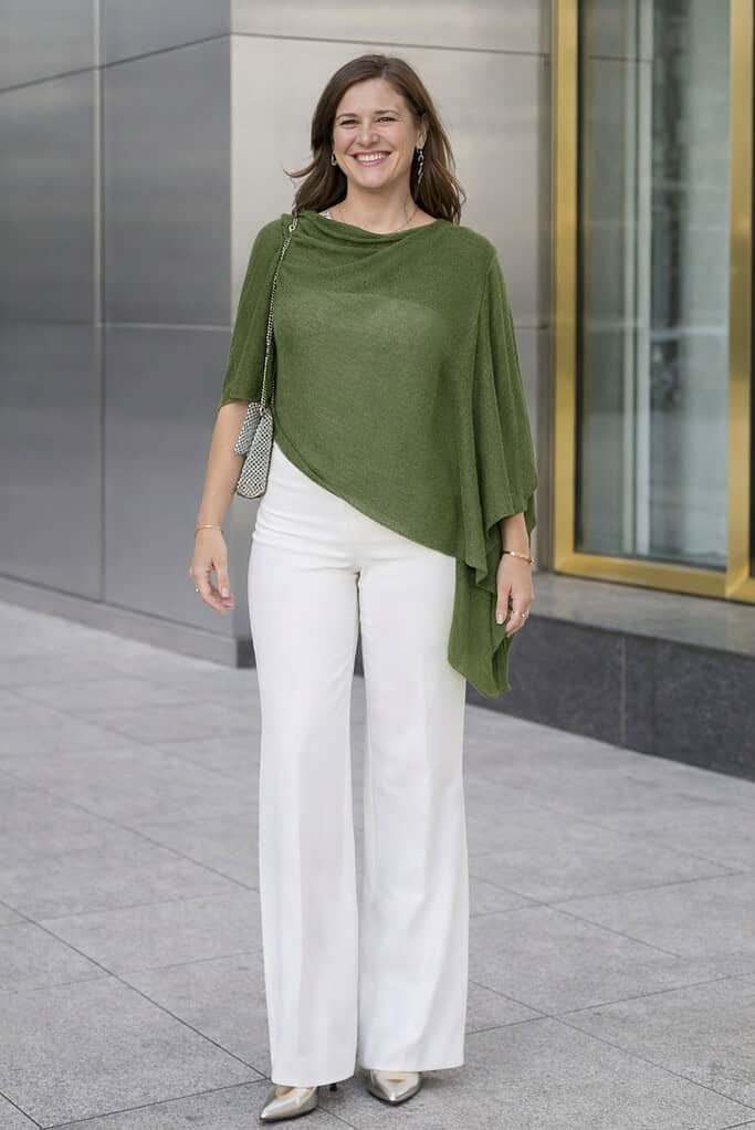 - Choose one statement piece: Whether it's a bold necklace, colorful blazer, or patterned pants, choose one statement piece and build your outfit around it.