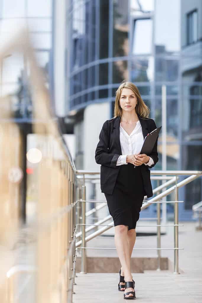 Also, incorporate a few everyday items like well-fitted jeans or comfortable dresses to add a more relaxed touch while maintaining a polished and professional appearance.