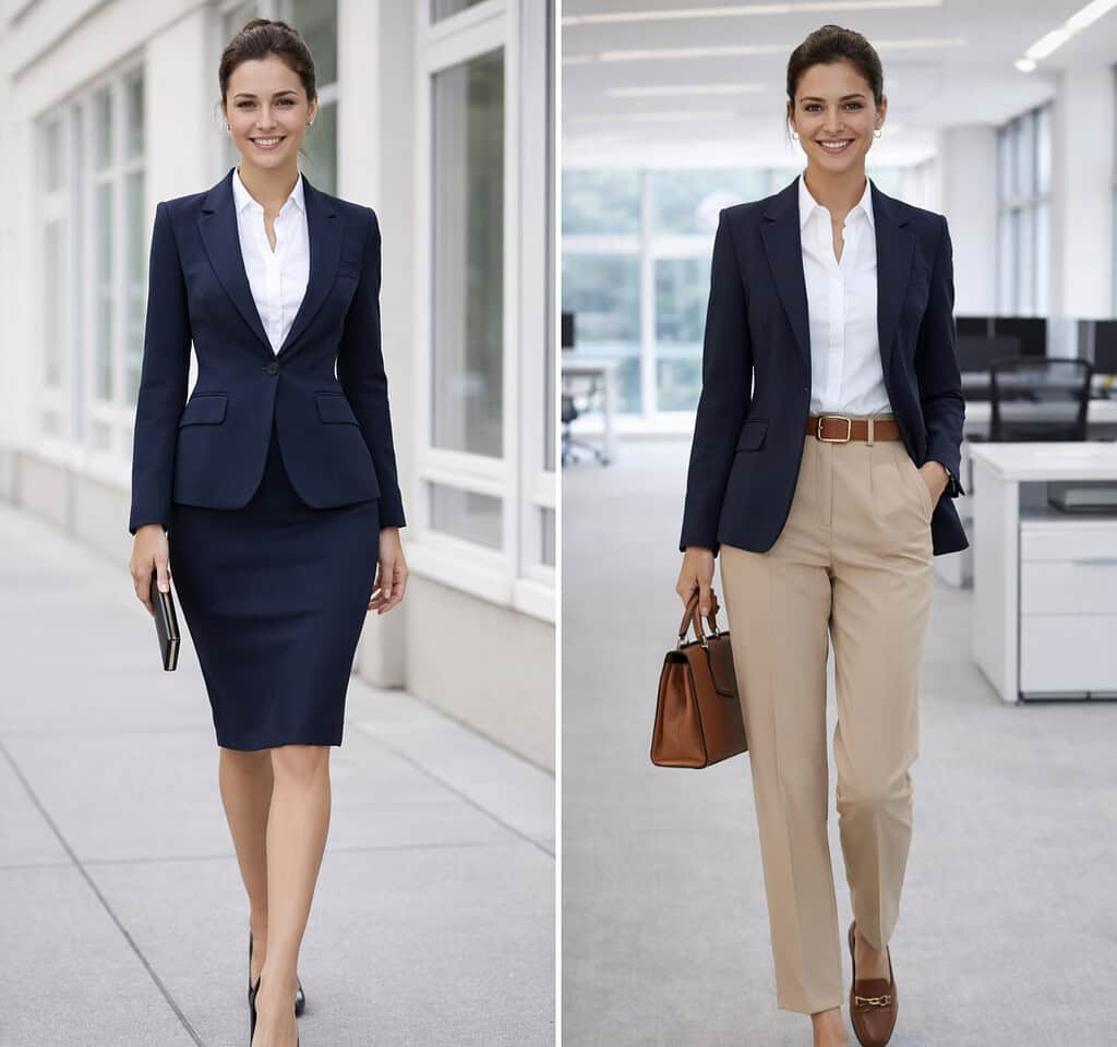By strategically pairing different tops, bottoms, and outerwear, you can achieve an array of professional looks suitable for other occasions.